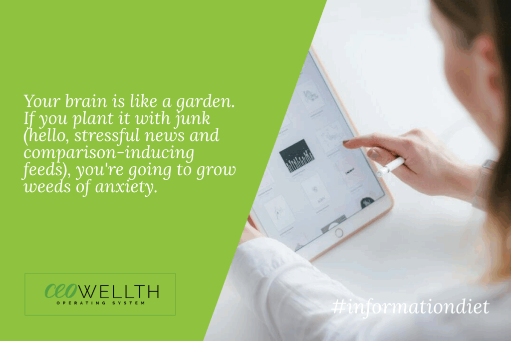 Just like the food you eat affects your physical health, the information you consume affects your mental and emotional health. As an entrepreneur, you are constantly bombarded with content: podcasts, newsletters, webinars, social media feeds, and an endless stream of “you should be doing this” advice.